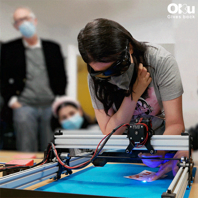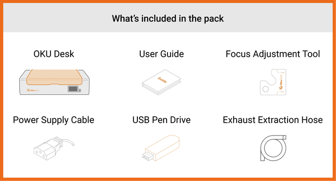 We have put our OKU Desk to the test and engraved this design on a piece of stainless steel! Just think of the possibilities for a minute…