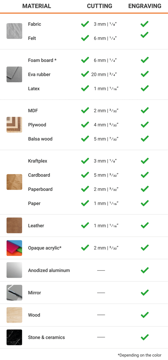 Thanks to this you can get amazing resolution when engraving your favorite pictures onto wood, slate, or even ceramics, and get the exact same shape when cutting anything you want..