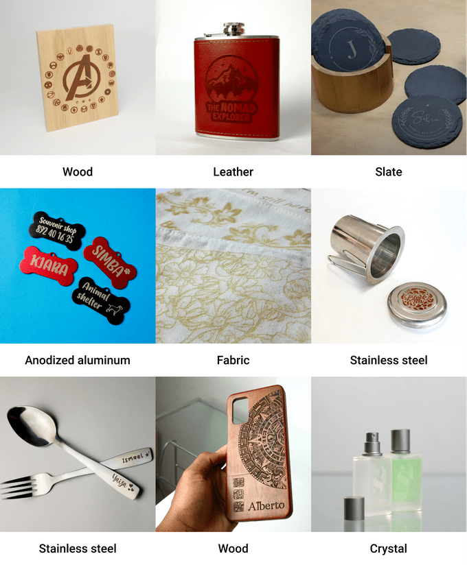 Also engrave materials such as ceramics, slate, mirror, and even stainless steel or anodized aluminum.